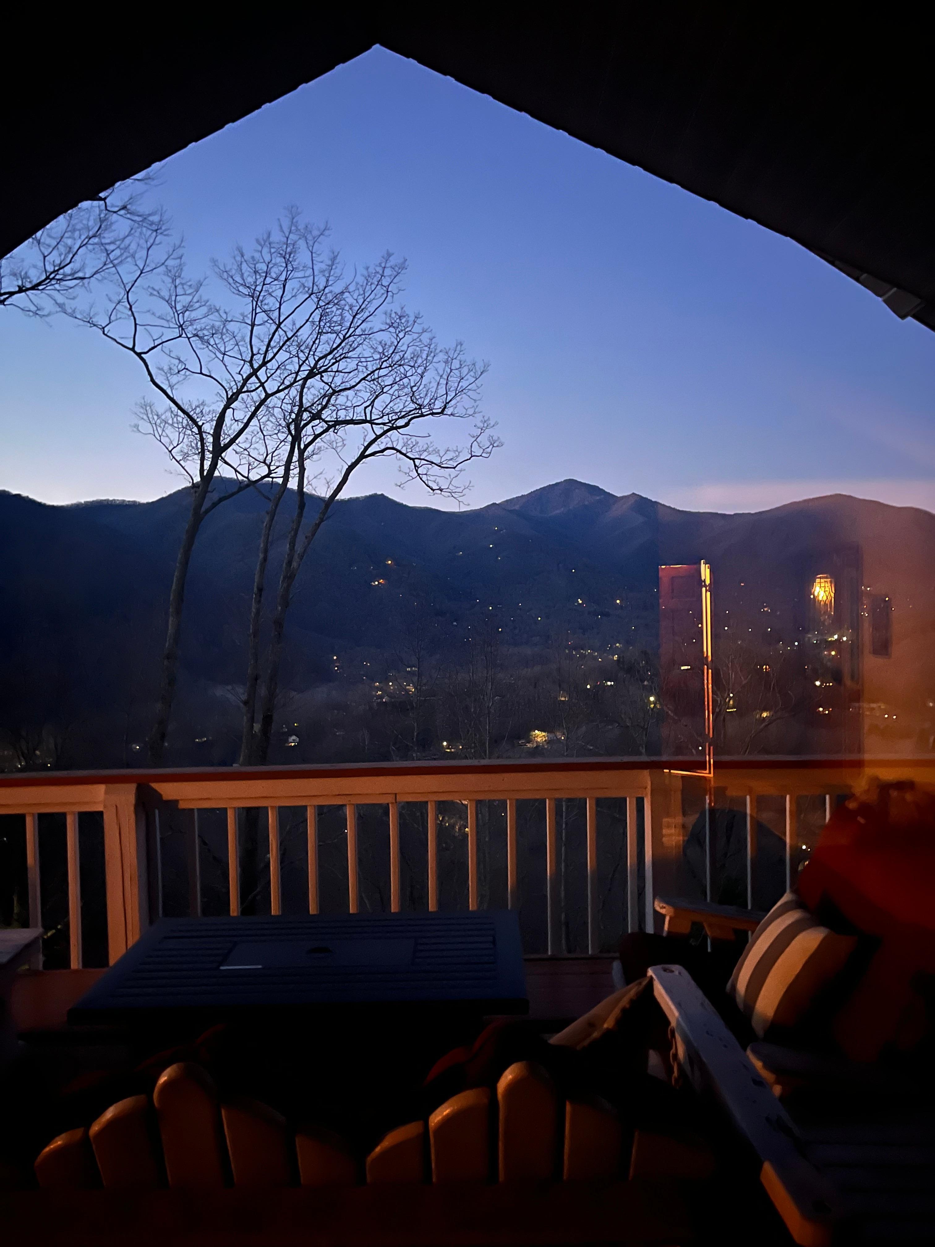 The retreat is located at the end of a paved road providing coveted seclusion and privacy with the convenience a 10-minute drive to the restaurants in Maggie Valley. With sweeping views of the surrounding mountains and SUNSETS, Ridgeline retreat offers over 3200 square feet of living space on 2 levels. New exotic solid hard wood floors and SS appliances add to the luxury and comfort of your stay. The retreat sleeps 8 comfortably in 3 bedrooms and a bunk room. Ridgeline also has 3 full bathrooms, a great room, game room, hot tub, 3 large stone fireplaces and 2 expansive porches both the full length of the house. Additional amenities include a fully equipped kitchen, multiple large screen HD Smart TVs in all bedrooms and living rooms, spectrum basic Cable, Netflix (provided), FREE Spectrum 1G Internet connection, full size washer/dryer and fire table on both porch decks.