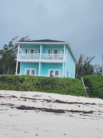 De Rayann Beach House @ Rocas Tres Hermanas, ubicado a cinco minutos en coche del aeropuerto internacional Exumas y 15 minutos en coche de George Town, la ciudad principal de Gran Exuma Island, es una casa de 2 pisos que tiene dos x 2 dormitorios, 2 y un la mitad de los apartamentos de baño. Una unidad se llama 'Ray' y la otra unidad se llama 'Ann'. Tanto Ray y Ann casas de nivel superior con 2 dormitorios y 2 baños. Cada habitación tiene un balcón. El dormitorio principal tiene una vista panorámica del mar. la planta baja se encuentra la cocina, un aseo y una zona de comedor y salón. Una puerta doble francesa se abre a una terraza privada con una vista impresionante del océano. Hay ventiladores de techo en todas las habitaciones y aire acondicionado central.
