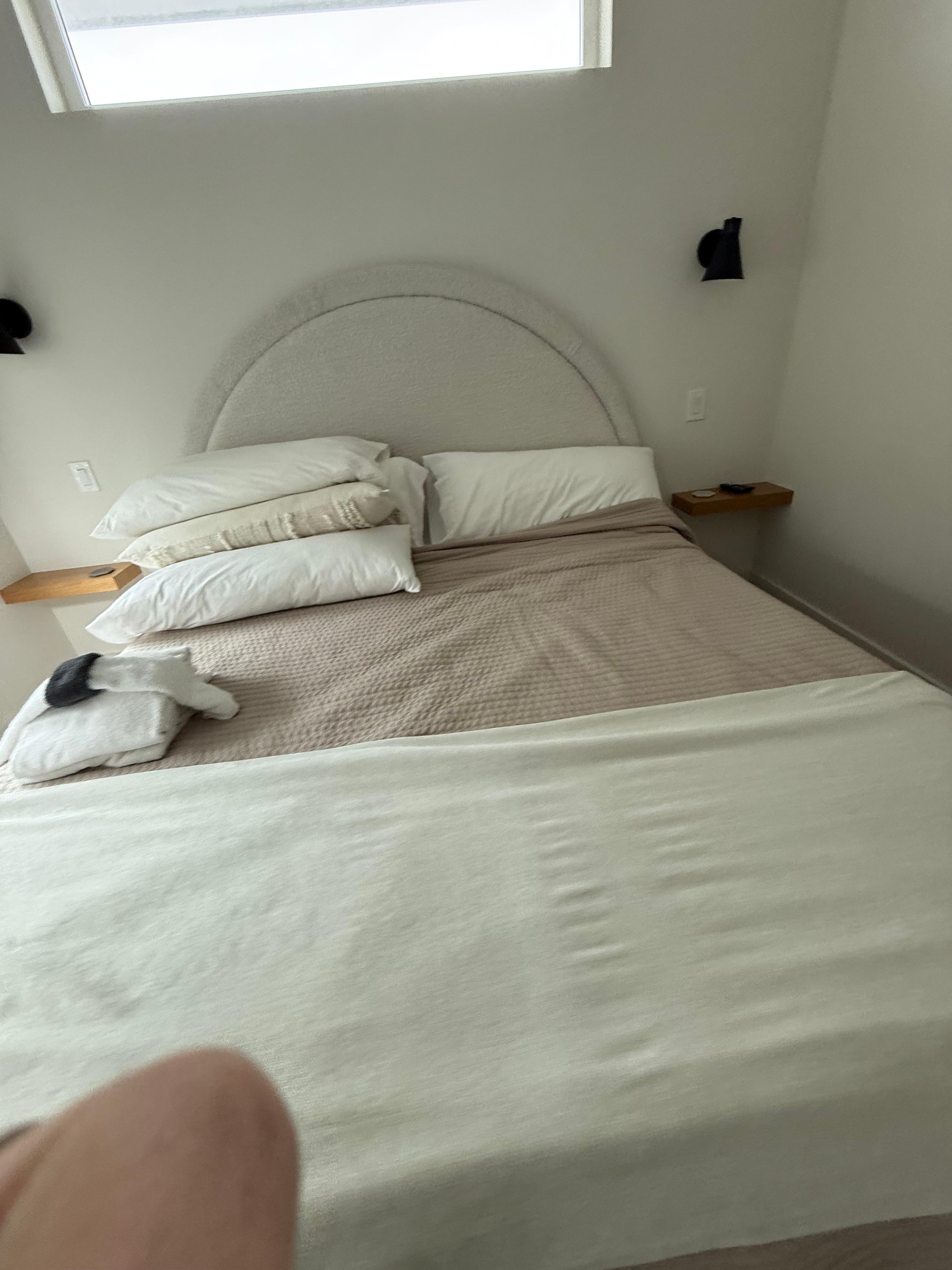 and furniture were all gorgeous, with simple lines. Two king suites upstairs fit our family (the downstairs couch pulls out to a queen bed if you need another spot for someone to sleep), and our kids loved the private heated plunge pool. I spent hours on the decks overlooking the private back yard (fenced), with the sound of palm fronds everywhere. Tucked down a little dead-end street, there is no traffic at the house, but mini-golf is across the main drag one block away. Walk two minutes east to a kayak put-in, two minutes west to an artisanal butcher shop and upscale market. We walked to dinner at the Conch House (ask for a tiki hut to dine over the water!). Anastasia State Park is a couple minute's drive south, and we spent a whole day there, with lunch at the park shop (fish and chips for the adults, grilled cheese for kids, sodas, seltzers, and beer available). Everything you need, nothing you don't, in a clutter-free beautiful setting that makes relaxing so easy.