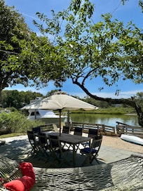 Location, location, location. You do not need to be a sailor or boater to be able to appreciate the private dock. Ideal for young and old kids as property is fenced in and only steps away from calm and shallow beach waters. Jump on a paddle board or float on an inflatable mattress right off into the pristine lake that is connected to the Peconic Bay. Boaters can dock here (please indicate). Or simply walk a few steps across a path and go straight onto the pristine community beach.