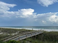 Welcome to Sea Struck, a stunning seven-bedroom, six-bathroom luxury retreat set along the pristine shores of the Gulf in Panama City Beach, Florida. Designed to accommodate up to sixteen guests, this spacious beachfront getaway is both pet-friendly and Snowbird friendly. Bask in breathtaking Gulf views, abundant natural light streaming through floor-to-ceiling windows in the main living area, and the comfort of a furnished balcony and expansive deck overlooking the shoreline. Step outside to enjoy your plunge pool and private boardwalk to the sand. With multiple ensuite bedrooms, smart TVs in every room, and inviting outdoor spaces complete with a dining and grilling area, Sea Struck delivers the perfect blend of relaxation, comfort, and coastal charm.