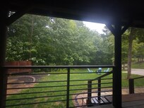 The cabin is situated in a quiet setting where you can enjoy nature. Enjoy the expansive front porch that overlooks a wooded area. It is equipped with many essentials so you can feel like you are home away from home. You can take in all the beauty that Spring Mill State Park has to offer by hiking the trails or visiting the historic village in the park.