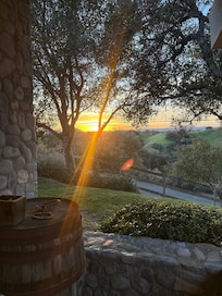 The back patio is furnished with a dining table for 8, and a nearby lounge area with 2 couches, making it an ideal place to enjoy meals with family or friends al fresco style. Once you've enjoyed watching the sunset behind the wine vineyards as the brilliant mixture of colors dissolve in the sky, cuddle up with a glass of wine or jump in the hot tub and watch as the stars above come to life.