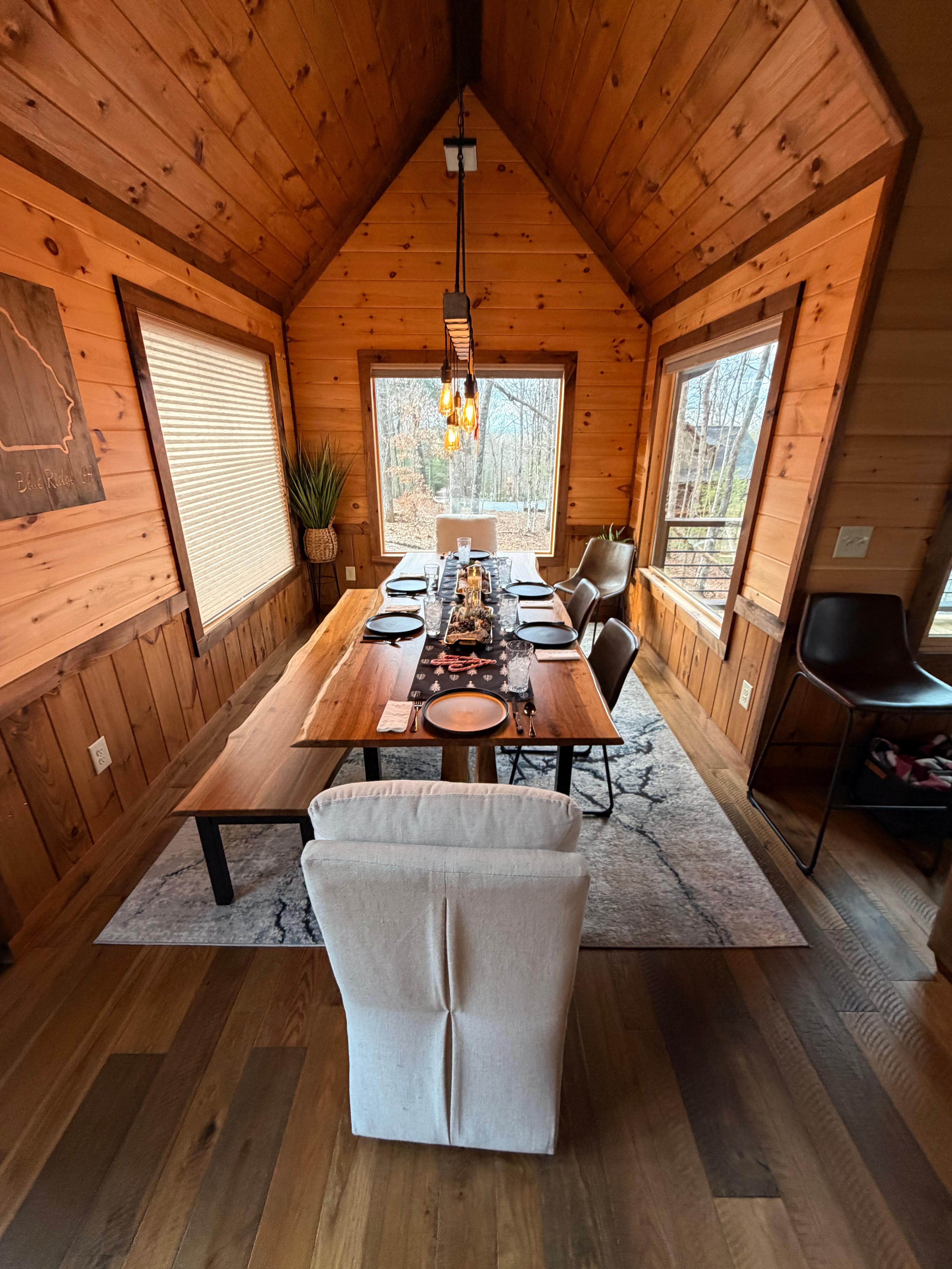Dining Room - live edge wood dining table seats 8, breakfast bar seats 3