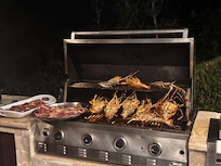 El primer piso exterior: tiene una increíble piscina de borde infinito grande y cascadas con un bar en la piscina para 6 personas, entrada a la playa, un gran jacuzzi y una gran área de entretenimiento al aire libre cubierta con una parrilla BB-Q de primera línea.