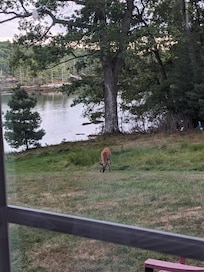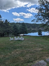 Usted nunca querrá salir de la terraza con tres paredes de puertas correderas de cristal que conducen a un patio de piedra en la parte delantera con el césped de barrido que conduce a la cala o la cubierta grande y soleado en la parte posterior. Relájese en el sofá cómodo (que también es una cama desplegable) o en una de las sillas del club o la reclinación mientras mira a Heal Cove y islas mientras está rodeado por los bosques de Maine. Un retiro tranquilo para leer, relajarse, meditar, practicar yoga o incluso ver la televisión. Siente la brisa fresca soplar adentro de la ensenada mientras que escucha las aves playeras y los grillos. Tenga cuidado con la ensenada para ver gaviotas, águilas pescadoras, halcón, águila calva y el bote de langosta ocasionales tirando de sus trampas o kayakers explorando la cala. Usted nunca se cansará de la vista increíble!