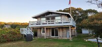 *** POR FAVOR ANNETTE ADMINISTRADOR DE "MENSAJES" PRIMERO ---- ANTES DE ENVIAR UNA SOLICITUD DE RESERVA !! (SOLO HAGA CLIC EN "PREGUNTE AL GERENTE UNA PREGUNTA" Y ENVÍE) *** *** FRENTE AL MAR: ¡su propia PLAYA PRIVADA! **¡¡¡Mascotas bienvenidas!!!Esta es una casa frente al mar / frente al mar de estilo inverso con una escalera a su playa privada.** La casa tiene una terraza envolvente (banco incorporado, parrilla de gas, 2 NUEVAS mesas de comedor, sillas y tumbonas) con fabulosas vistas al océano. También hay una terraza privada ubicada en la parte delantera de la casa (fuera de la habitación principal de la reina), con una NUEVA mesa de comedor y banco, con vista al mar y al bosque. ** ¡TODAS LAS HABITACIONES, incluidas las habitaciones, tienen VISTAS AL OCÉANO y ventiladores de techo! El piso superior tiene: un dormitorio principal con baño privado de 1/2, terraza privada con mesa de comedor, ventilador de techo, techo de catedral y vista al mar. El piso superior también tiene un plano de planta abierto: sala de estar, comedor y cocina (nuevos mostradores de granito), todos los pisos de madera, techos altos y paredes de ventanas (¡hermosas vistas panorámicas al océano!) con puertas correderas a la gran cubierta envolvente. La cubierta tiene escaleras que bajan al patio trasero cubierto de hierba con cuatro sillas Adirondack, un banco, una hamaca y una parrilla de gas. Al lado está la escalera a su playa privada. Hay mucha privacidad y estacionamiento. El primer piso, todos los pisos de baldosas NUEVOS, tiene 3 dormitorios, todos con ventiladores de techo, también un baño completo y sala de lavandería. Hay puertas correderas para el patio y la playa. ¡Todos los muebles nuevos, todas las camas nuevas y colchones lujosos! Ducha privada privada al aire libre con agua caliente y luces de té. En el cobertizo para su uso hay: 6 bicicletas (2 niños, 2 adolescentes, 2 adultos), juguetes de playa, refrigerador y 10 sillas de playa. 2 televisores: la sala de estar cuenta con un NUEVO TV DE PANTALLA PLANA INTELIGENTE de 50 ", el dormitorio queen de nivel inferior tiene un televisor de pantalla plana.