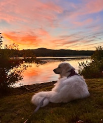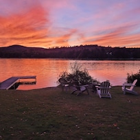View of Lovewell Mountain. Western sunsets every night, directly across the lake. A dock. A canoe, paddles, and life jackets provided for your use. An outdoor fire pit for campfires on our lawn just a few feet from the lake. A rowboat we deliver to you for a few dollars on occasion when people ask...