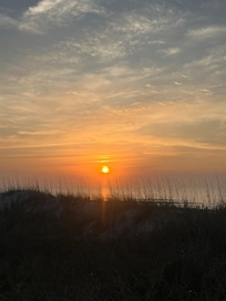 There are three floors in the complex, and no elevator; being on the first floor is great for older people and children, alike. It is easy to walk right out to the beach and easy to get your luggage and groceries into Unit #3. We do not have an ocean view from our condo, but just a few steps away, we can sit on one of the walkway benches, coffee in hand, and watch the sun rise over the Atlantic. Sit on the bench in the evening and see the moon making a luminous path on the water. The walkway over the dunes is wonderful and the rinse station on the walkway is great, too. If you golf, there are over 100 fabulous golf courses in the area. There are putt-putt courses, arcades, shops, etc., all within an easy drive. Brookgreen Gardens is nearby. The pier is near by for fishing. Fishing by surf-casting is in the front yard! Pawley's Island shoppes and those great hammocks are about 15 minutes away. The restaurants in Murrells Inlet, Pawley's, and Myrtle Beach are fabulous. There are many first class restaurants in the area. You have choices ranging from fine-dining establishments to what we call "fish camps" with fresh seafood, paper towels, and paper-covered tables. Additionally, there are many multi-cultural restaurants. You have options! Of course, you may wish to buy fresh ingredients and cook in the condo. Many have said we have all the most fully-equipped kitchen they have found in a rental unit!