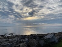 The views (sun and moon rises over the Bay; everchanging skies and water)