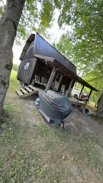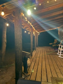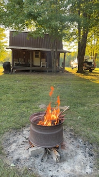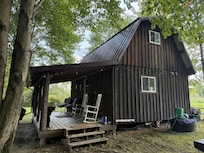 Sit on the porch looking out over the fire ring and 10 wooded acres. Plenty of parking.