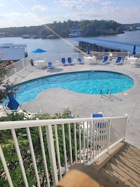 At this Lake of the Ozarks condominium, driving is simply a choice, not a necessity! Situated adjacent to the lake's beloved hotspot, Dog Days Bar & Grill, and neighboring Bob’s boat rentals and a soon-to-arrive amusement park, convenience is at your doorstep. We are proud to offer the convenience of an ELEVATOR! As a top-floor unit, you'll enjoy unparalleled privacy with no neighbors above you. Freshly added to the rental program, availability is dwindling rapidly. Don't wait, reserve your stay today!