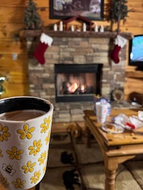 (JOHN 15:12 VRBO#245656 1 BR , 2 bth , Gas fireplace, gas grill, electric fireplace in large master bedroom with king log canopy bed, Large flat screen tv... log cabin)