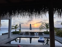 Villa Tjitjak has 5 double bedrooms and 5 bathrooms. All bedrooms are equipped with air conditioning and a fan. There are two bedrooms on the ground floor, and the other three are upstairs, offering ultimate privacy and beautiful views of the ocean and garden.