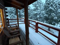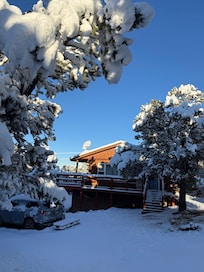 The cabin was love at first sight. We are not Club Med or Hilton Hotel people. But we are nature/peace and quiet people. This rustic log cabin was barely visible from the road, hidden by pines, nestled into the side of a hill. It sits up higher than all of the other properties around it. With huge windows on three sides of the Great Room, you have commanding views of Locke Mountain/San Isabel National Forest and the Sangre de Cristos. We also value 'quiet' - living in, or near, a large city for most of our lives, it is nice to be in at a place where you actually hear nothing but the gentle breeze through the pinion pines, an occasion bird chirping, the braying of the neighbors donkey. Often, ou hear nothing at all. A car passes maybe once or twice an hour - and even then, it is 400 yards away, and down a hill. We chose this cabin as a perfect get-away for ourselves, never thinking that we would rent it out to others. The only reason we are not in Denver now enjoying our cabin is because of job opportunities abroad in Sweden. This cabin is perfect year-round (provided you have a good 4-wheel drive vehicle in the snowy months, or chains on your tires).
