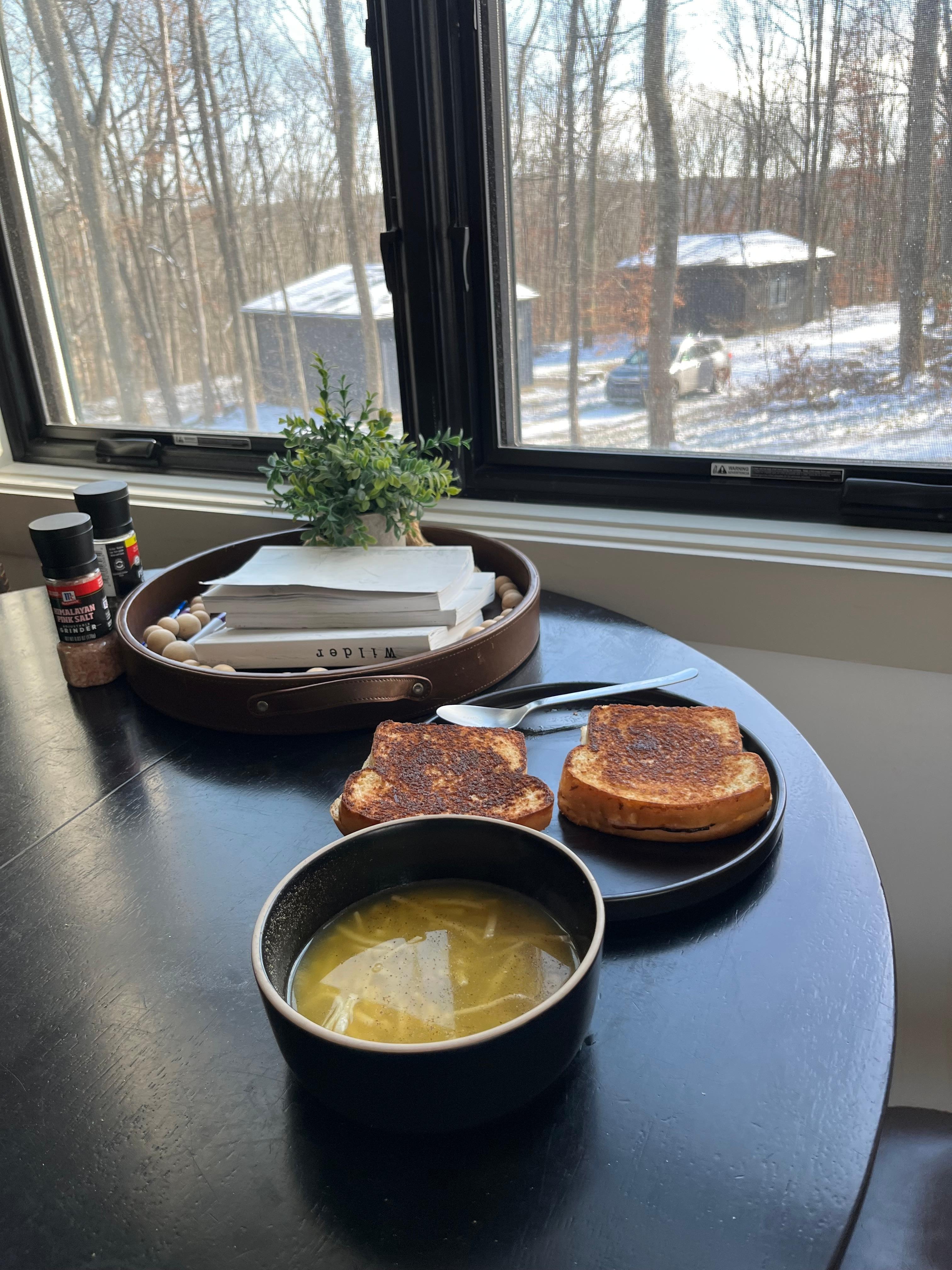 XO Bungalow has a bedroom with a king bed and room darkening blinds, full bathroom with shower, and an open concept living room, dining room and kitchen space. Large windows in the living room and bedroom look out onto a private deck, hot tub, fire pit, and of course, the tranquil woods of Wilder. A 3 seater sofa pulls out into a queen bed in the living room to accommodate 2 more guests.