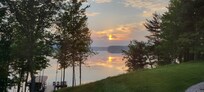 There is a large upper deck off the main living area with Polywood outdoor seating. The lower level offers a cozy chatting area, and a place where you can challenge your friends to a game of darts. You can sneak into the airy screened porch to enjoy the outdoors, or start a warm fire overlooking the lake at the outdoor firepit. (with firewood provided to fuel the 48" firepit) Relax on our private pier or swim in the sandy frontage. Float 50 yards into the bay and experience a knee deep sand bar, or the kids can play in the huge custom landscaped sandbox. The possibilities are endless!