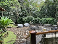 Discover Quinta el Bosque and Casa Mima, two separate homes nestled on 3 hectares (7.4 acres) of lush land. Built with natural materials like wood and rock, these retreats blend seamlessly with nature. Casa Mima features a main bedroom upstairs and two additional bedrooms downstairs, all with large picture windows. Enjoy leisurely strolls along the stone pathways and visit the organic vegetable garden near the chicken coop. Though private, you’re just a 5-minute drive or 45-minute walk from the main road and local market.