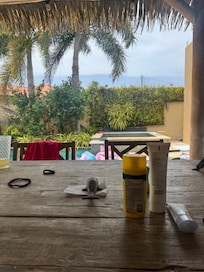 After a day at the beach get away from the crowds and return to your private villa. Enjoy games from cards to dice under the palapa. Not up for a game? Head to your personal pool bar for your favorite beverage. She has four comfy bedrooms and four bathrooms in the main house. She sleeps eight in the main house. Add the detached guesthouse for a 5th and 6th bed (king down and queen in loft) and bath and she will easily accommodate 12 people. Guest house is included at no charge for a group of 8 or more.