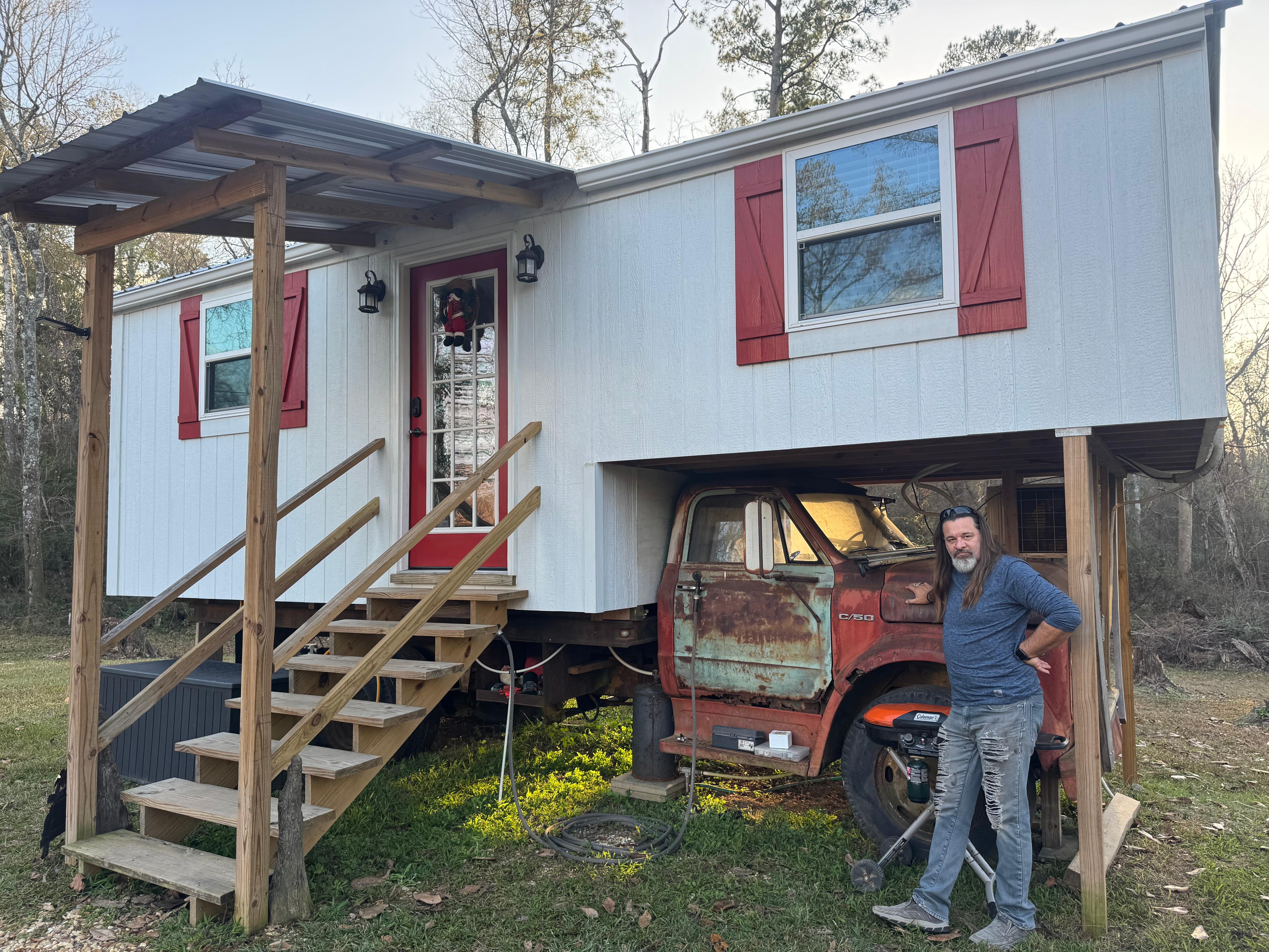 The truck home is parked on a peaceful and private water front property on the Tangipahoa scenic river.