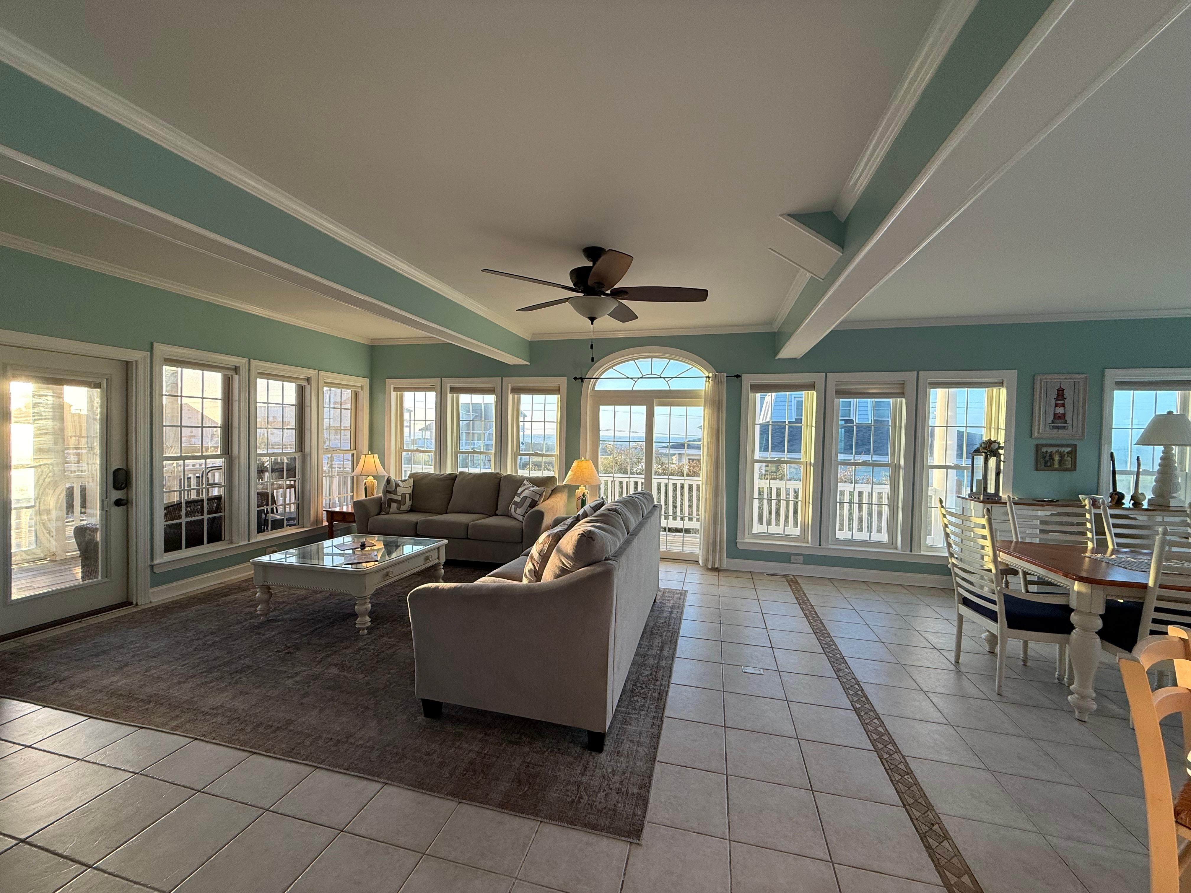 My family and some friends stayed at this great property for 7 days, 6 nights. Joann, the owner, checked i. With me shortly after we arrived to make sure everything was as described and to let me know I could contact her for anything. Communication was 10/10. The house was clean and the linens and towels come in packages so you know that they are clean and fresh. The downstairs and kitchen area are all open and ideal for family dinners and there was so much seating around the table, kitchen bar, and island. The house is wrapped in windows so the natural light in the house is like nothing else. Everything about our stay was wonderful. We enjoyed the 2min walk to the beach (we learned that you aren’t allowed to walk outside over the dunes), beach fishing, rented surf boards and body boards, a 10min drive to town for groceries or other essentials, the jacuzzi, and so many other things! I 100% recommend this property for all different kinds of visitors.
