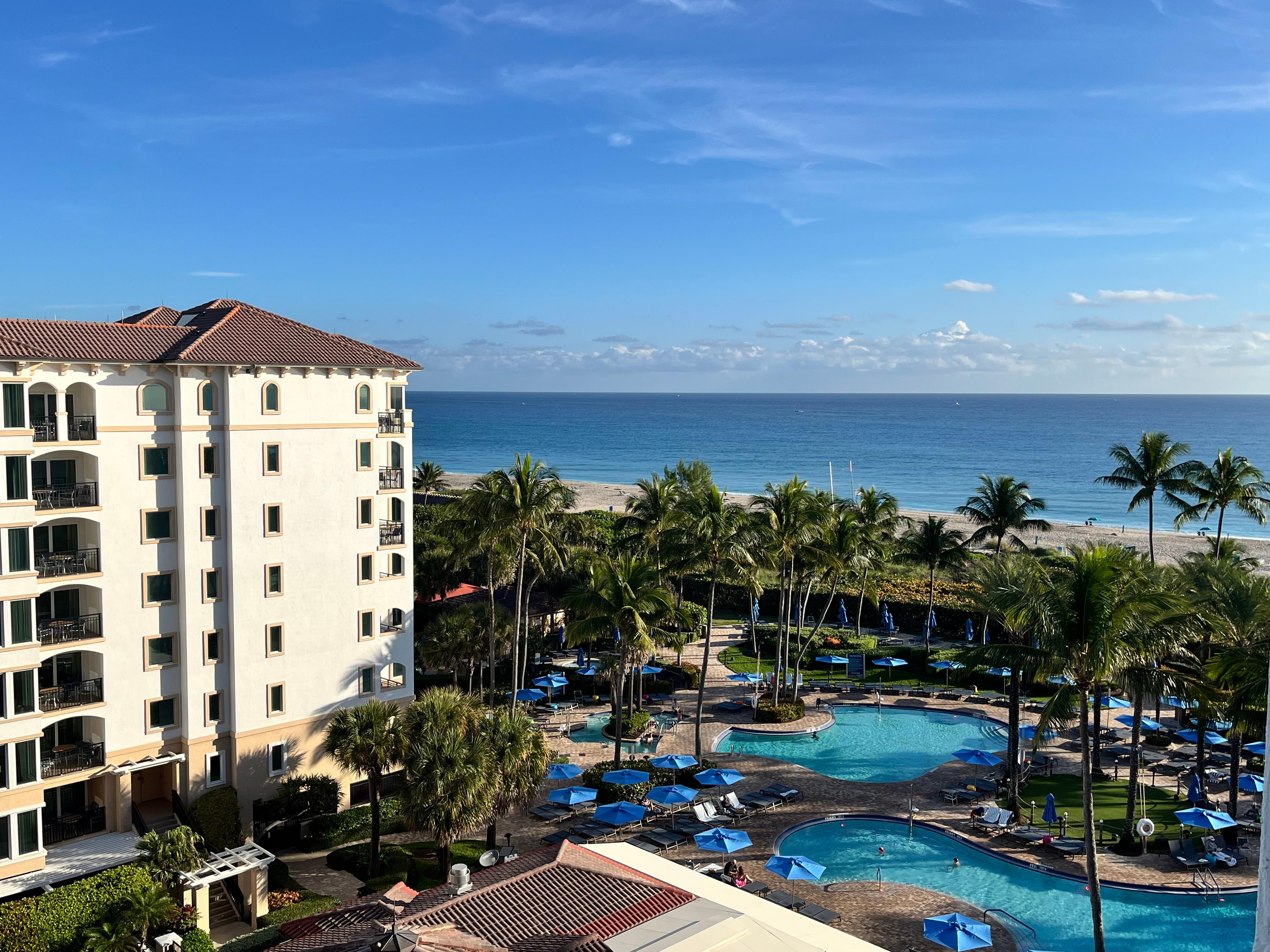 Marriott's Ocean Pointe is a vacation resort located in Palm Beach Shores, Florida, on Singer Island. It offers a variety of accommodations, including guest rooms and one- to three-bedroom villas, all equipped with modern amenities like kitchenettes, private balconies, and living areas. The resort features several outdoor pools, a fitness center, and activities such as miniature golf and shuffleboard.