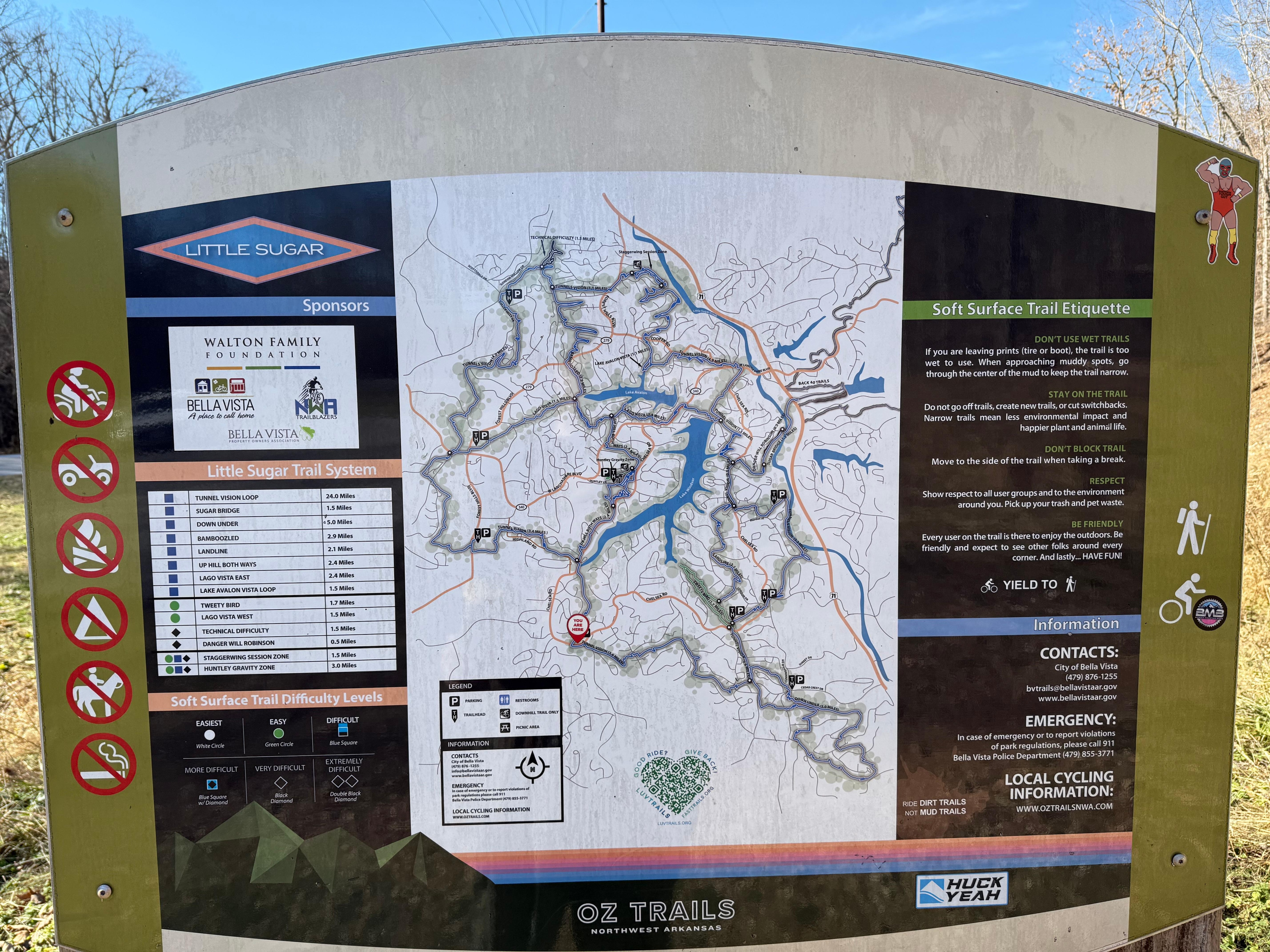 All public trails (e.g., Back 40, Blowing Springs, Little Sugar)