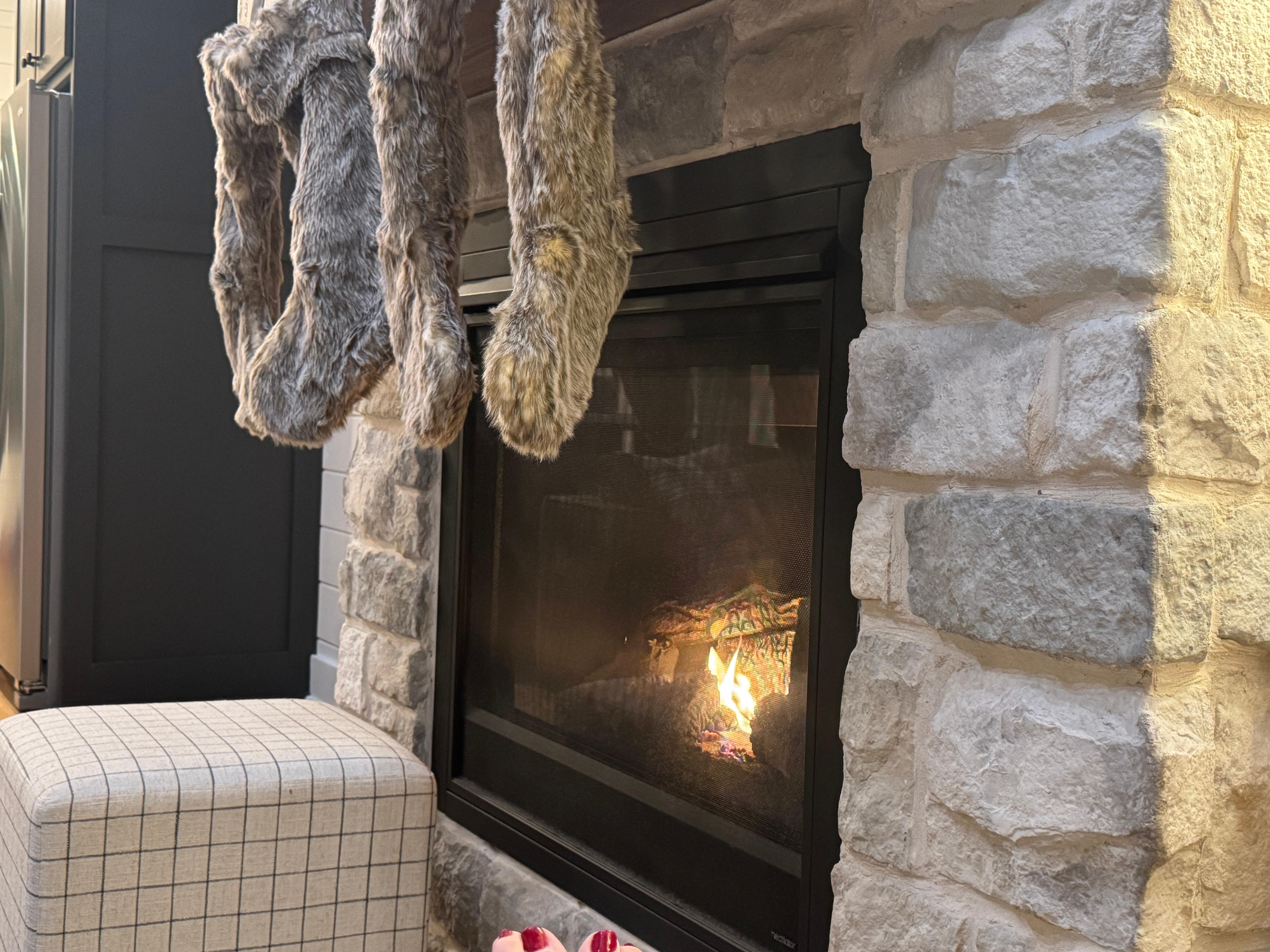 •Floor to ceiling stone fireplace with gas logs