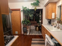 No trip to Portland is complete without indulging in great food, and our fully equipped kitchen is ready to help you create culinary goodness. The kitchen features a double oven, food processor, toaster, coffee maker, spices, Bodum electric kettle, teas, microwave, Ninja blender, rice cooker, crockpot, and a KitchenAid stand mixer for your baking needs. A bonus: there’s filtered water right at the sink!