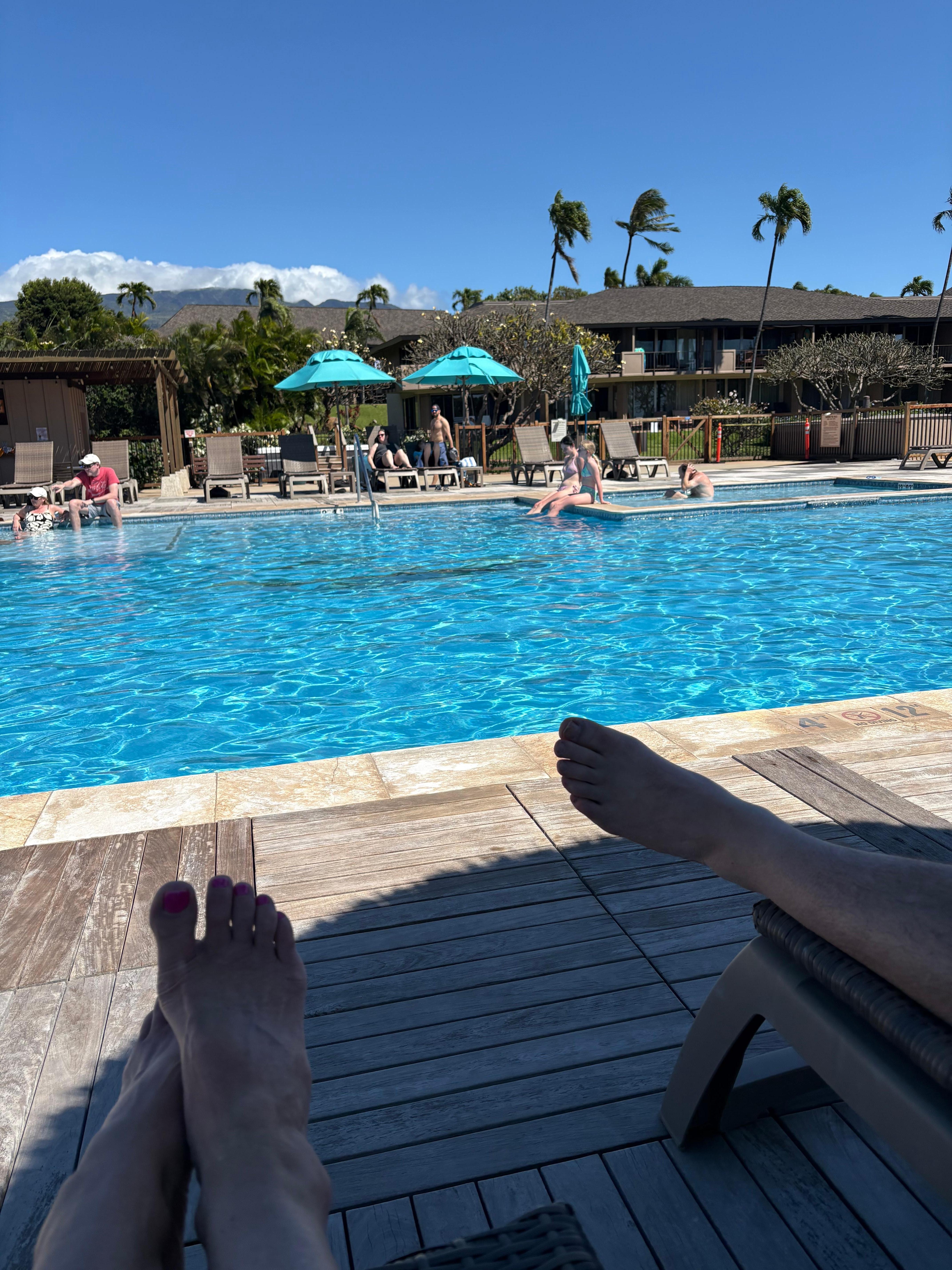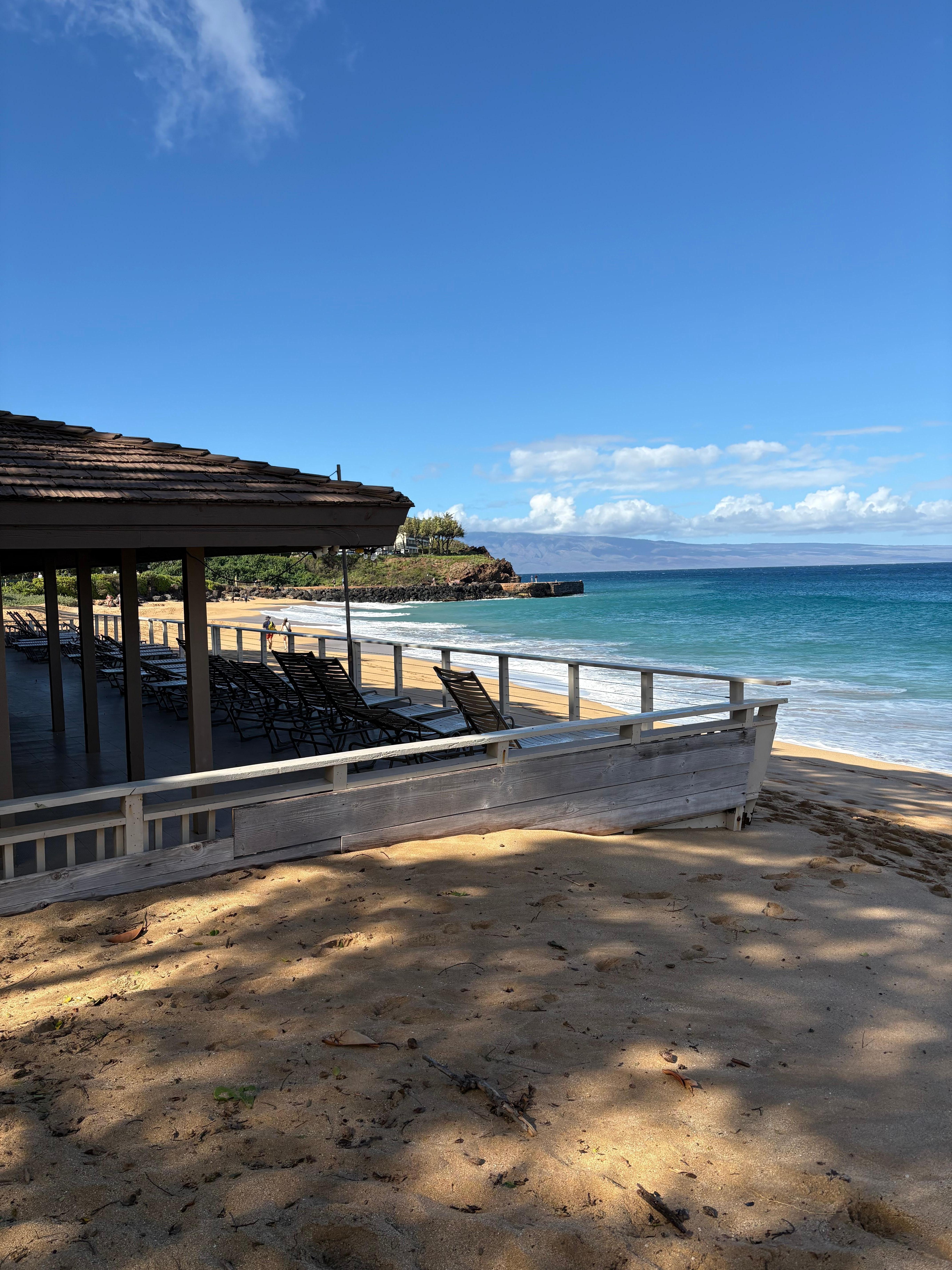 • Maui Eldorado exclusive Cabana with full kitchen, dining area, bathrooms, showers, towel service, and lounge chairs