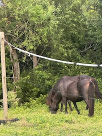 This home is cozy and very "home" like, yet big enough to share with another family. Very close to the water and walking distance, but a road back for privacy. The horses love to visit this property which adds a special touch!