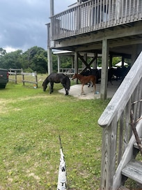 Located just a short walk to the beach, enjoy your day having fun in the sun and sand to come home and start your relaxing evening. Enjoy the ocean views while you rest on one of the two large balconies. Choose to spend some family time soaking up the sun by the private pool. End your day having a grilled dinner in the covered picnic area or even competing in a family game of volleyball. Get a good night's rest so you can start it all over and don’t be surprised if the horses come to say hello.