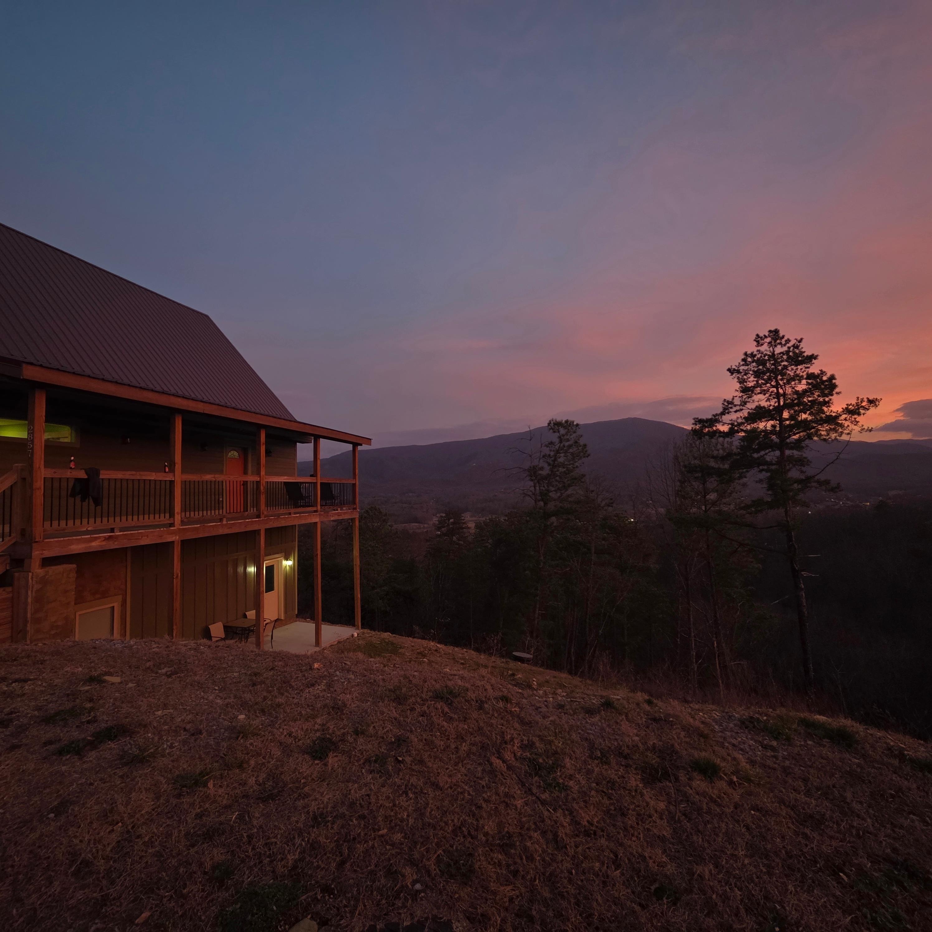 La cabaña se alza al costado de Hatcher Mtn, aproximadamente a una milla de Wears Valley Rd en una carretera pavimentada del condado. Desde las ventanas, te enfrentas a Cove Mountain en Wears Valley y Smoky Mountains. Disfrute de la privacidad y el aislamiento de esta ubicación ya que solo hay otra cabaña de alquiler cerca. Se encuentra cerca del Parque Nacional de las Montañas Humeantes, Pigeon Forge (9 millas) y Gatlinburg (18 millas). Hay 3 dormitorios (incluido un loft), cada uno con una cama queen size y su propio baño privado. Una lavadora y secadora se encuentra en el baño del nivel principal. La sala de estar y el comedor en el nivel principal le permiten disfrutar de la impresionante vista a través de una pared entera de ventanas. Si se cansa de la vista, la sala de estar cuenta con cómodos asientos para disfrutar de la chimenea de leña, la lectura o el televisor de pantalla plana equipado con Xfinity y reproductor de bluray. Además de un dormitorio y un baño, el nivel de abajo incluye una mesa de billar, TV equipada con Xfinity y un sofá cama. Hay varias áreas de terraza para disfrutar de las vistas, relajarse en la bañera de hidromasaje, comer en la mesa al aire libre o cocinar en la nueva parrilla de gas. La cocina bien equipada tiene todo lo que necesita para cocinar una comida para su familia y amigos. Hay un amplio estacionamiento para 3-5 autos o algunos autos y un bote o un pequeño RV.