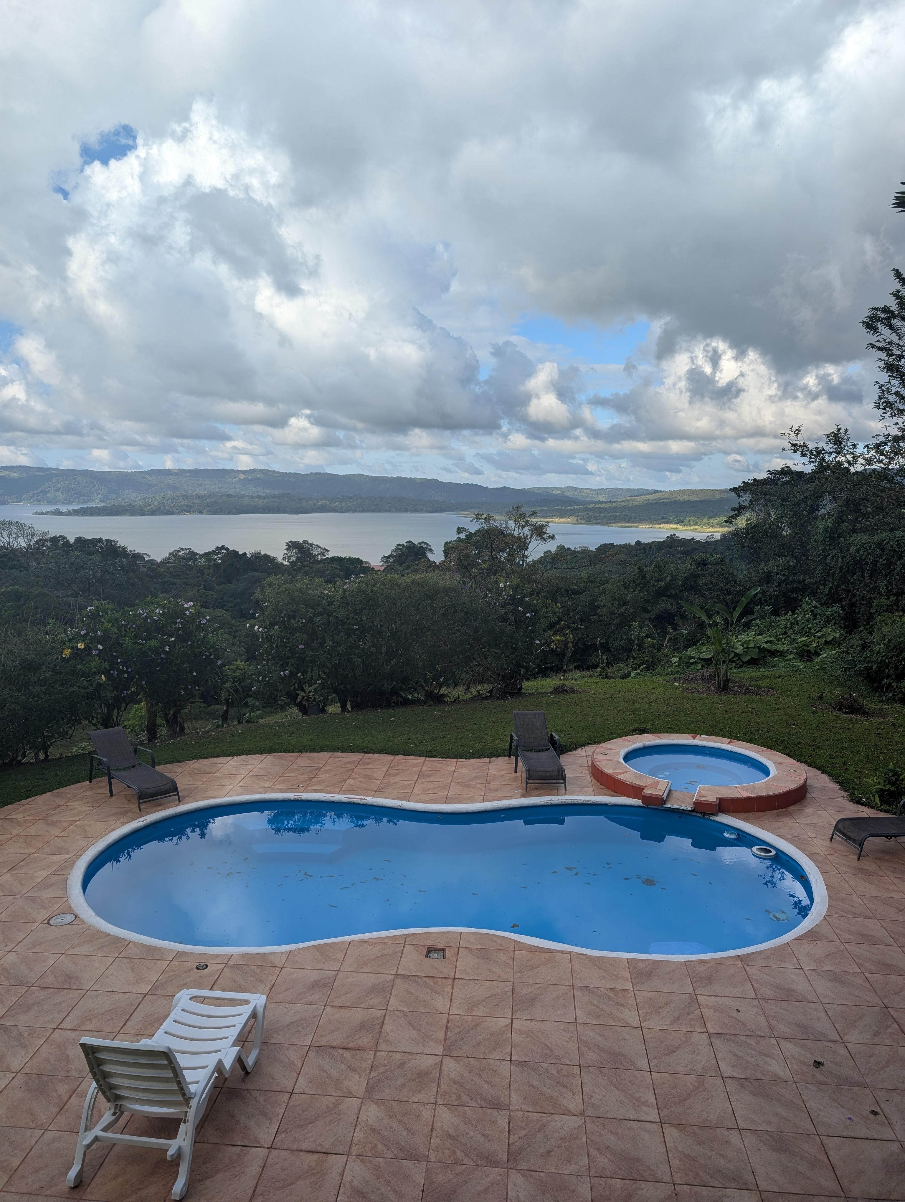 Esta reciente construcción (2012) espaciosa / 4 baños casa de 3 dormitorios se encuentra en 2 acres de terreno adyacentes al volcán Arenal State Park. Cada habitación tiene su propia terraza con vistas al antiguo árbol de Ceiba y vistas al volcán Arenal y el lago. El diseño abierto permite la brisa fresca de montaña fluyan a través de la casa. Disfrutar de actividades de ocio en el bar / sala de juegos y refrescarse en la piscina o relajarse en la bañera de hidromasaje con vistas directas a la última cara activa del volcán. Ideal para grupos / familias (para 6-12 personas). Disfrute de comidas cocinadas por nuestro chef personal (bajo petición) o preparar su propia creación culinaria en nuestra cocina totalmente equipada. servicio de limpieza incluido en días alternos. Servicio de lavandería disponible bajo petición.