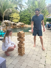You won't find many rock pools in Naples; this one is unique. Our lot is also oversized for this neighborhood (lot and 1/2). The decor isn't your typical American Beach house style—imagine a little villa on the Mediterranean coast. You don't see that in this area. It stood out when we stepped in the door—very different from the many others with the "typical Airbnb furnishings and vibe." You'll see, this is set apart from the rest.