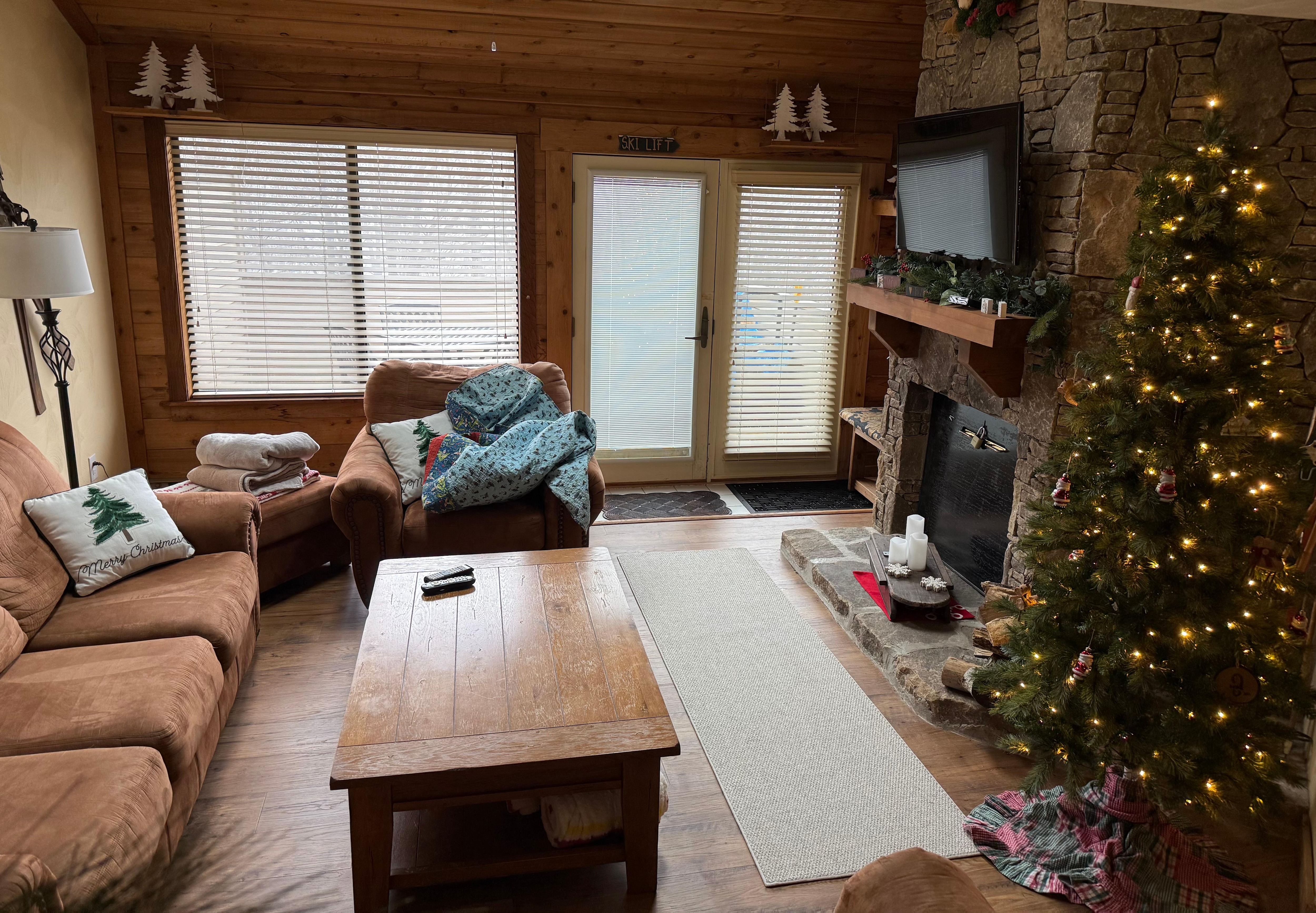 Open the back door and ski onto the mountain at the Village Trail. After a day outside on the slopes, kids and families can relax and unwind in comfort with a full kitchen, WIFI and cable TV and lots of games. The first bedroom has a set of full-size bunk beds and a trundle with a full bath. The master bedroom has a king bed with a private bath. Enjoy the fun at the resort including the restaurants, bowling or the arcade. No need to drive down to the resort - there is a shuttle to the fun stuff at Seven Springs Resort outside our front door.