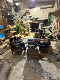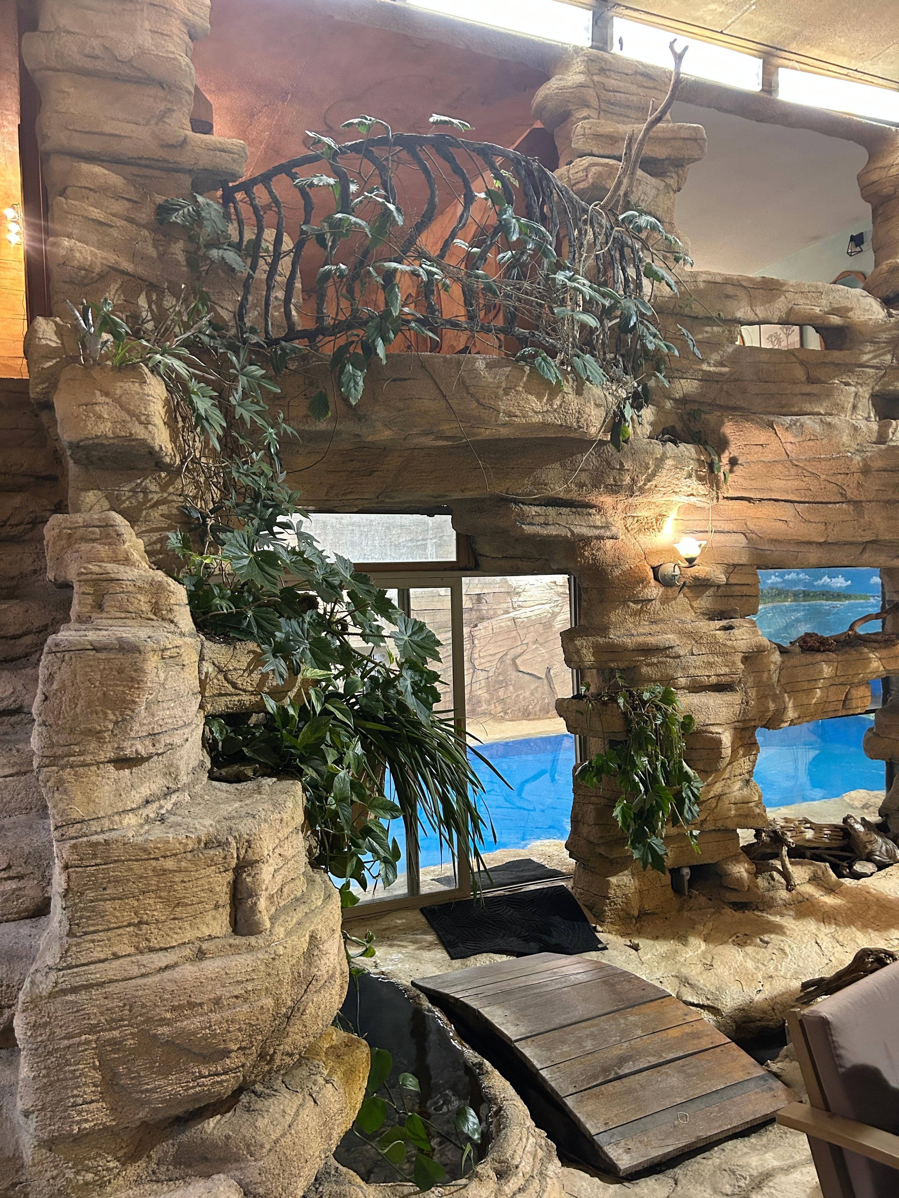 The great room will transport you into another dimension. You might feel like you’re visiting your favorite Rainforest Cafe, entering a scene from Jumanji, or revisiting your childhood memories of the Flintstones.