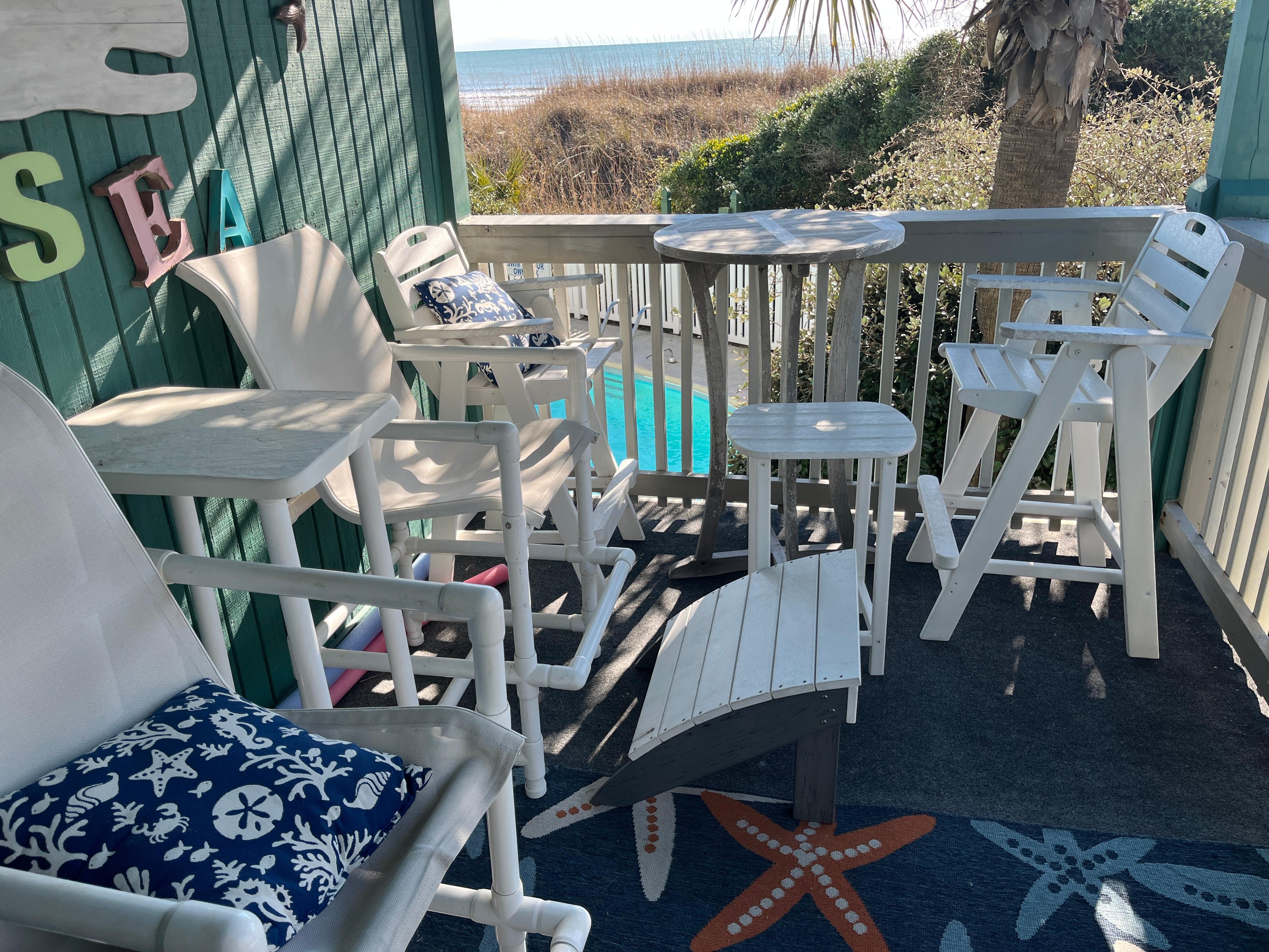 Relax on your private oversized balcony with a morning coffee or unwind with a glass of wine while taking in the peaceful ocean views. Enjoy the fresh sea breeze and calming atmosphere. The balcony overlooks the swimming pool and provides direct access to the pool, sundeck, and private beach.