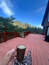 Nestled in Cloudcroft, this charming house offers up to 6 guests, 2 bedrooms - one with a king bed and en suite bathroom, and the other with a queen bed in spacious loft; including a separate sitting/gaming area with views of the tree-tops. The 2 bathrooms feature a jetted bathtub and/or a shower. Additionally, there is a cozy living room with a sofa bed for extra space. The open concept living-dining-kitchen area allows for creating family memories, and enjoying a relaxing fire in the soapstone stove. Kitchen is fully stocked with all of the essentials, including basic seasonings. The large deck offers a relaxing outdoor space for taking in the sounds of nature, catching glimpses of wildlife passing by, spotting constellations overhead, and enjoying many beautiful sunrises and sunsets. Experience what Cloudcroft has to offer with a stay at our delightful house, tucked in the tree-filled canyon, 9000ft above stress level.