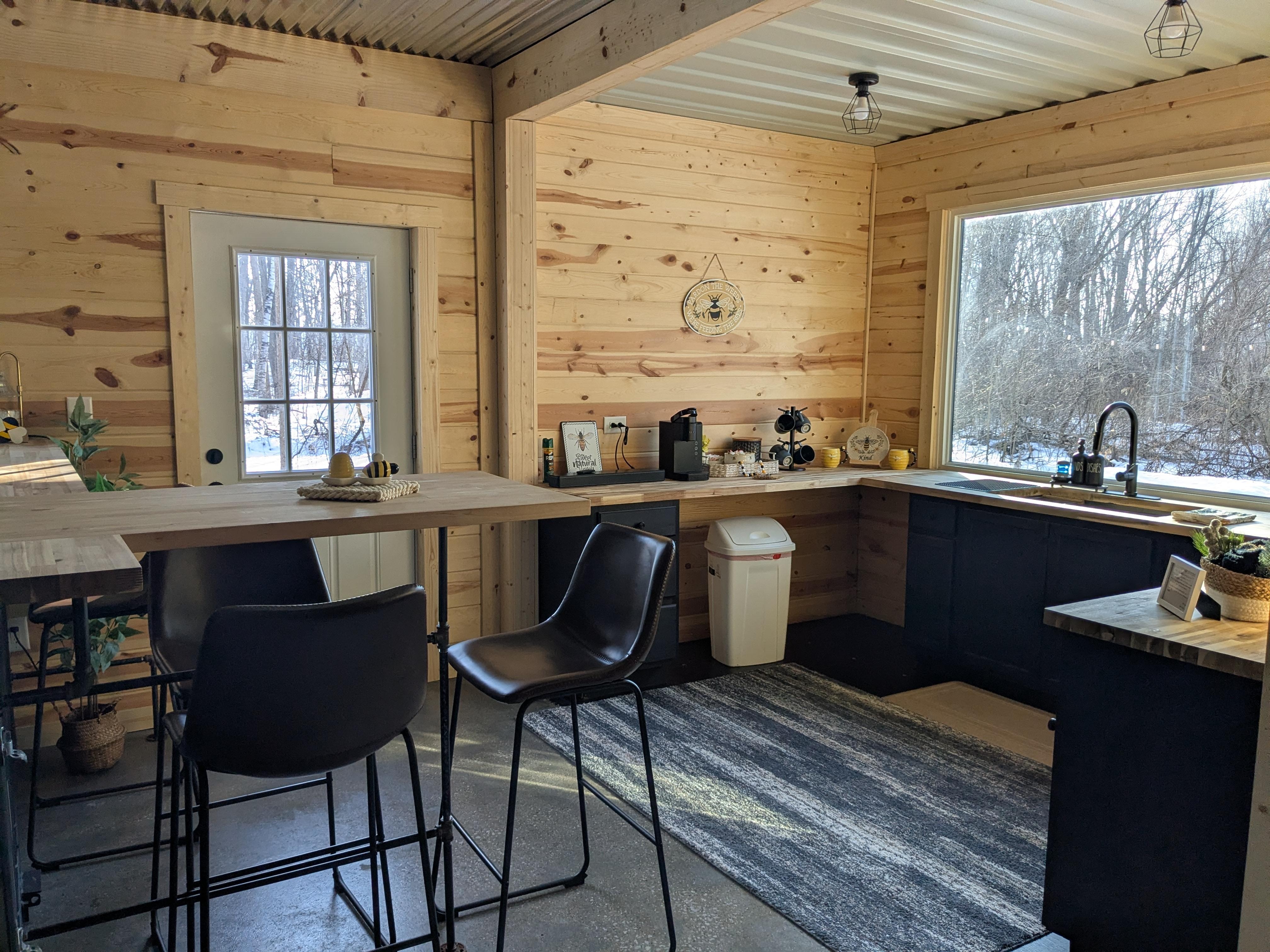 Welcome to our cabin, located on private property our cabin is built from two shipping containers, surrounded by nature and a pond. Inspired by the charm of beehive decor.
