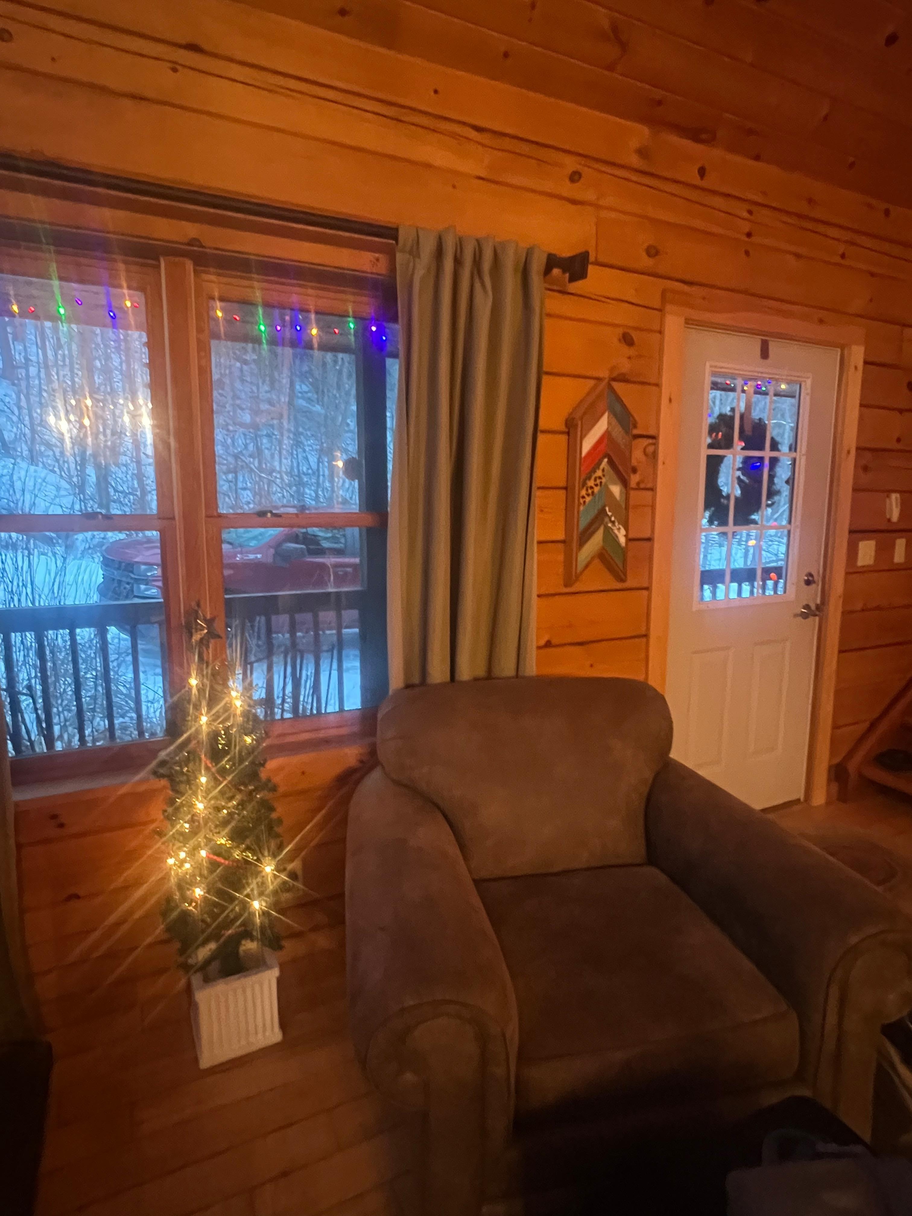 The cabin was built in 2007, and has beautiful winter views of the surrounding mountains. In the summer the yard is surrounded by trees, which makes the backyard and deck very private. There is a small BBQ, Adirondack chairs, and a fire pit. It comes with all the appliances you would need, including a new washer, dryer, and dishwasher.