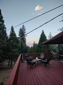Primary bedroom includes Cal King bed, en-suite bathroom, black out curtains, TV, closet, dresser & fan. Guest bedroom includes 2 (low profile) twin bunkbeds, black out curtains, TV & closet. Guest bathroom allows for bath or shower. Stack washer/dryer combo. Enjoy the Mountain View’s from every window. Cabin is on an acre lot adjoining National service land with trails to hike straight off property. Only 10 minutes to Bass Lake for all the fun water sports. Less than 20 minutes to the South Entrance of Yosemite, to Mariposa Grove & Nelder Grove. OHV & mountain biking trails, Angel Falls, Mammoth Pool,