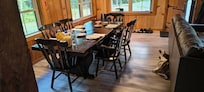 Our cozy retreat sleeps up to 10 guests, offering a warm and inviting space to relax after a day of outdoor adventure. Enjoy a fully equipped kitchen, a spacious living area with a
