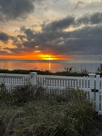 Beach front homes capture a unique experience that words cannot express. You owe it to yourself to live on the water, at least one time in your lifetime! Our cottage offers country farmhouse charm overlooking the beach. Open the windows and enjoy the sounds of gentle waves coming in breathe in the healthy ocean air. Watch amazing sunsets from the yard, on the beach or from the sunroom.