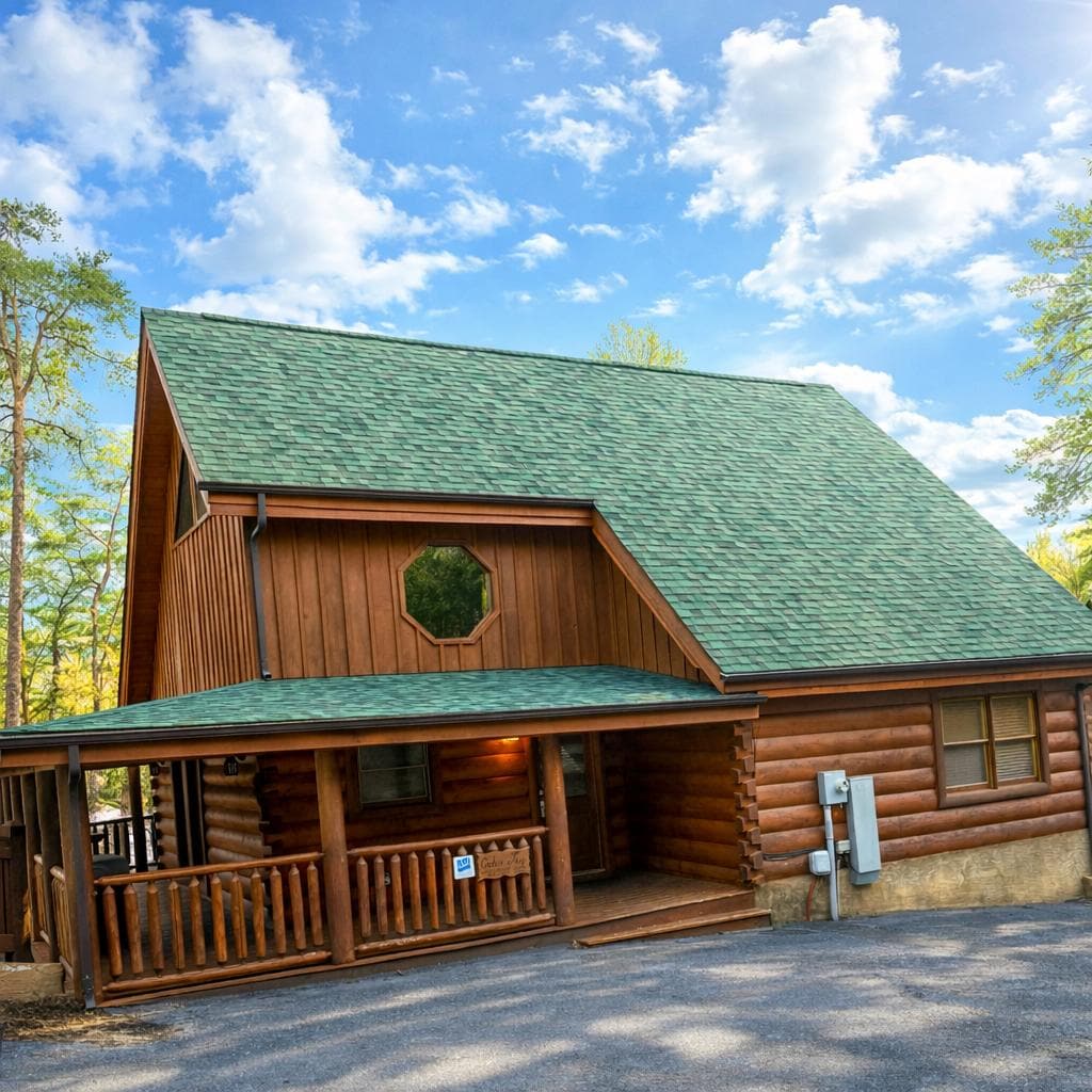 Situado en Bear Creek Crossing! Escapar de la vida cotidiana y venga a la cabina de la alegría. Ubicado a solo cinco minutos de la diversión llena de Parkway, disfrutarás de todo lo que esta casa de madera de lujo tiene para ofrecer.