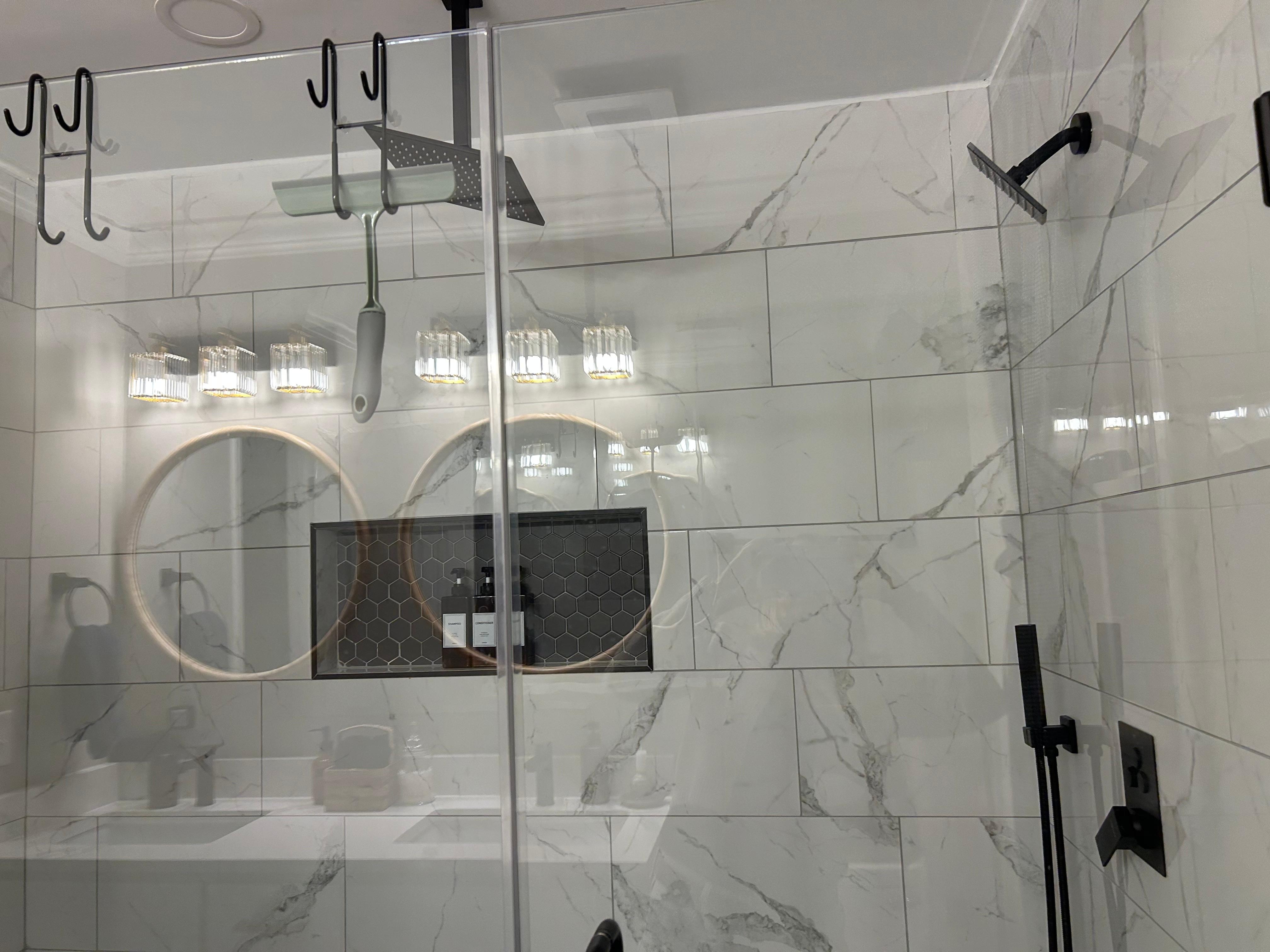 - Spacious bathroom with waterfall shower
