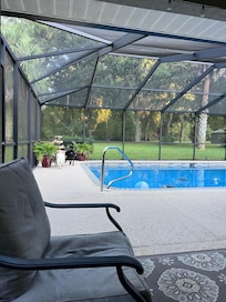Esperamos pasar días en el lanai, donde una gran piscina y abundantes muebles de patio invita a las tardes llenas de diversión. A medida que el sol se pone usted puede encontrar ser serenata por más de 100 especies de aves que viven a lo largo de la orilla del río, incluyendo águilas, águilas pescadoras, y los búhos! Siéntase libre de usar el muelle comunitario que conduce a cualquier barco de tamaño hacia el río Withlacoochee, que se conecta con el río Rainbow y el lago Rousseau.