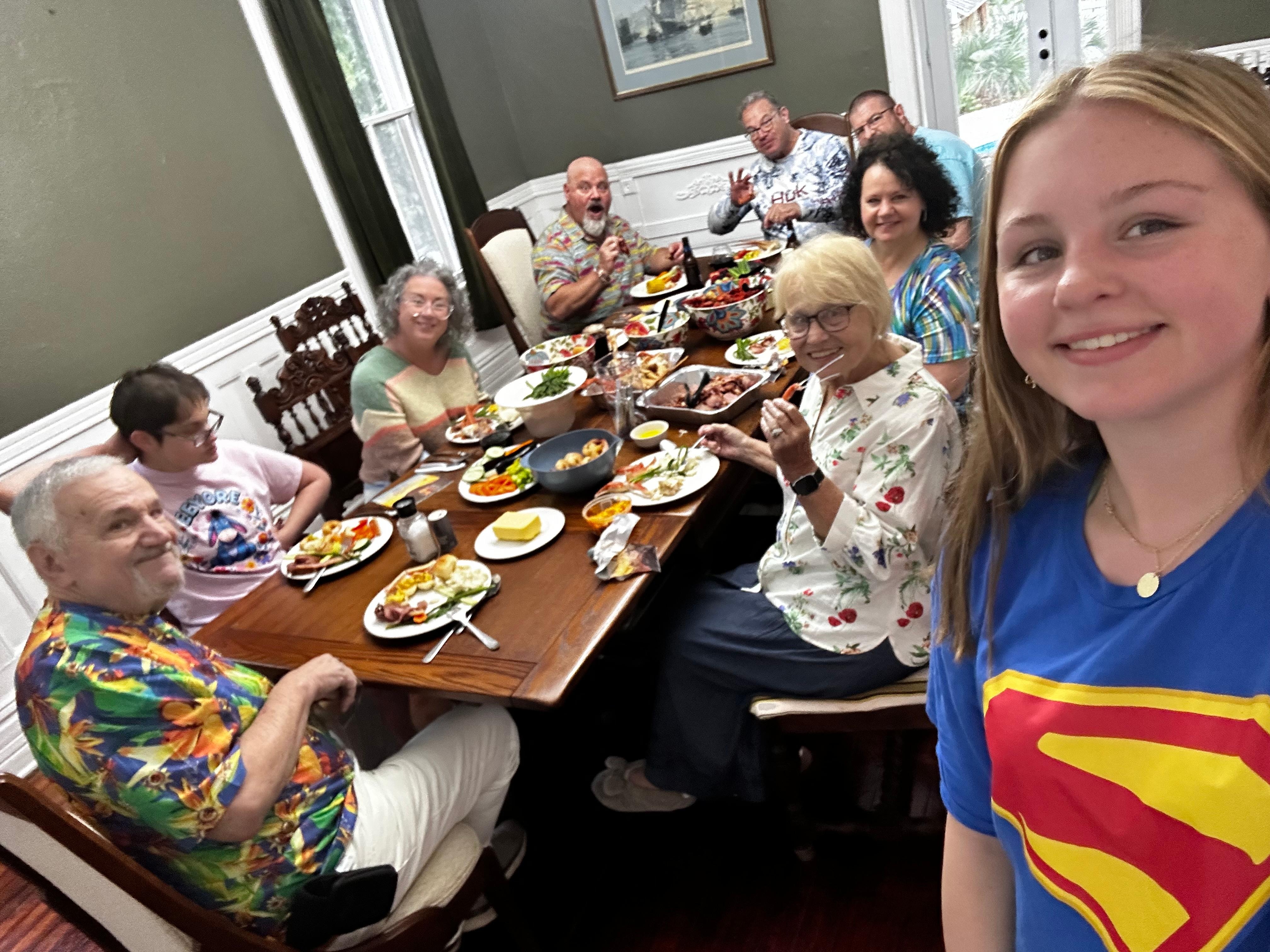 The backyard has an outdoor dining table with six chairs, and two sun lounge chairs next to the pool. We also have a carport lounge area where the grill is located.
