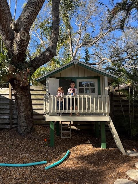 The secluded backyard is perfect for lounging in a hammock, using the outdoor shower, or your kids playing in the tree house! There is plenty of outdoor seating - whether you want to enjoy your meals outside or sit by the fire pit after a long day at the beach.