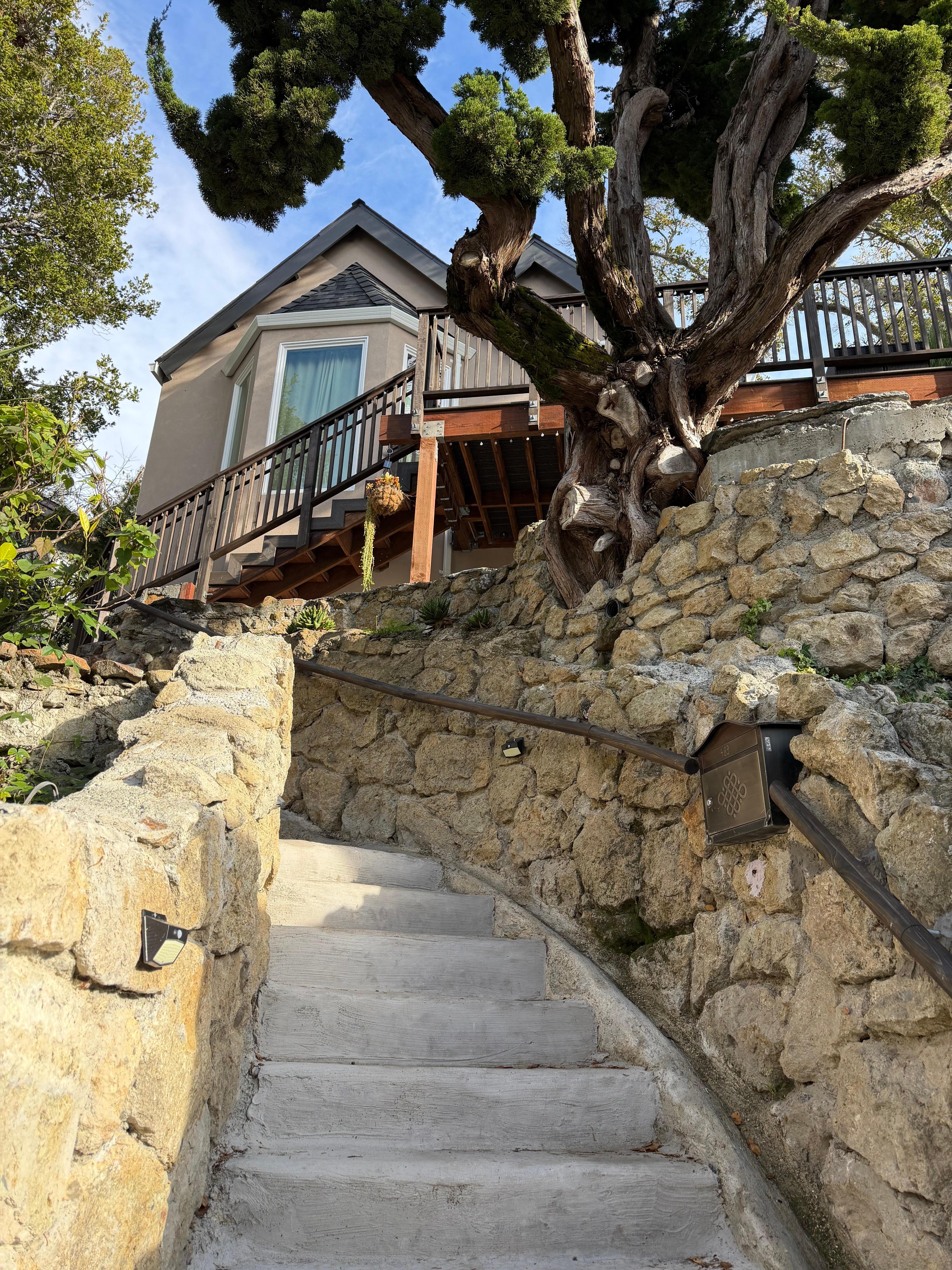 ● A serene primary suite with garden views and private yard access